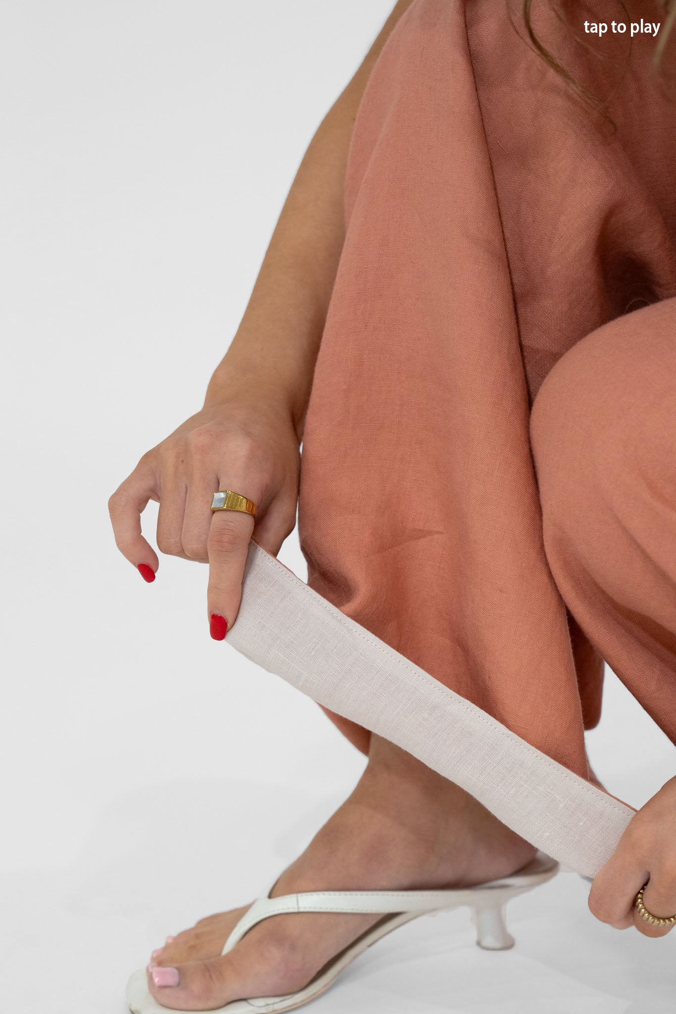 The reversible Willow Pant is made from a double layer of natural linen, one side is Sand and the other side is Rosewood with a Sand statement waistband. Featuring a loose, oversized design that cinches at the waist for unparalleled comfort and a flattering, feminine silhouette.